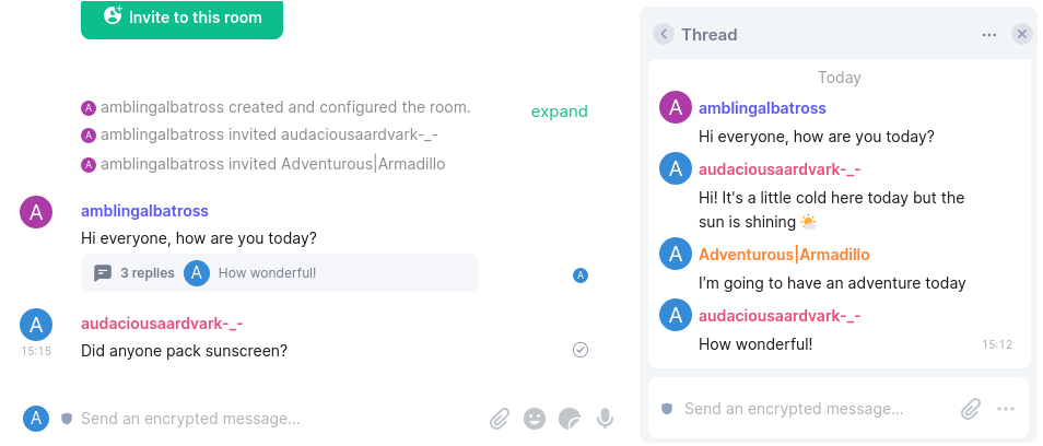 - Threads now has a more polished UI and users can now link to events in a thread. Notifications for threads messages are being worked on and should land very soon.