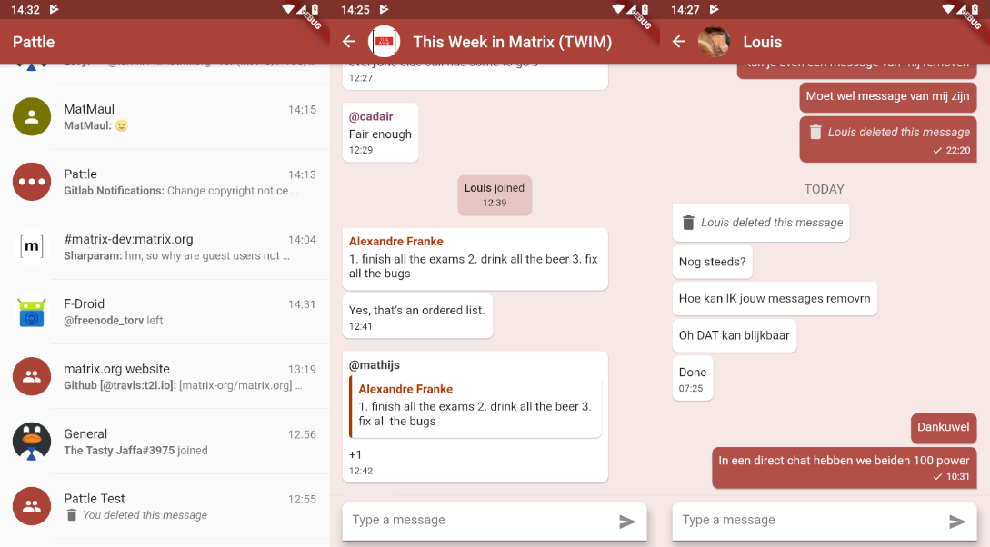 Also, the first block of E2EE functionality from aa13q has been merged to libQuotient master - so far it's just uploading the keys but receiving messages is already well in the works!