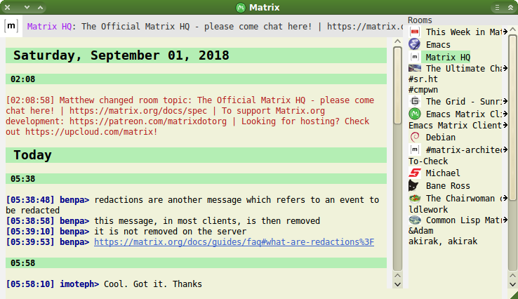 If you're following Matrix much at all, you will surely have seen it by now: Riot, the most popular client, has announced the v1.0 milestone. I won't reiterate the features and improvements here, but do check out the blog post, or just head over to https://riot.im/app and see for yourself!