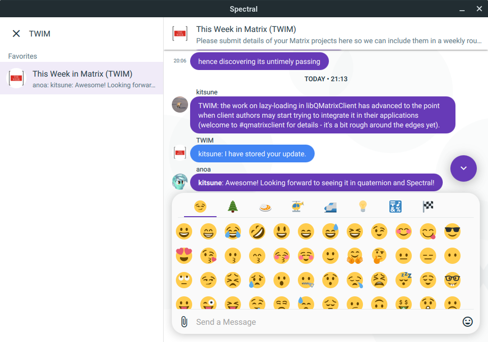 libQMatrixClient, which powers Spectral and Quaternion was released by kitsune, Lazy Loading coming soon: